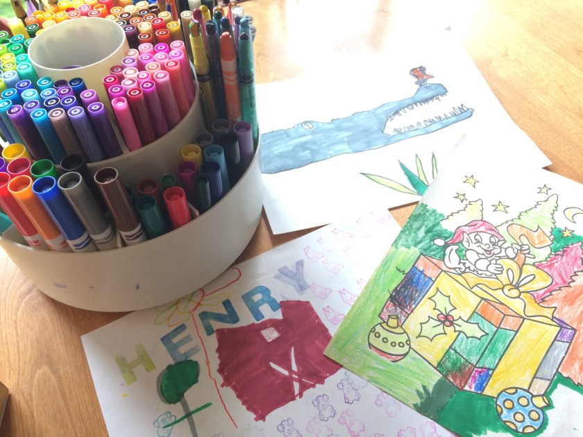 Though my Momma looks forward to the visits of her great-grandkids, the change in the level of activity always brings a certain level of stress to her Alzheimer’s plagued mind. She worried about a lot of things while they were here. Everything from whether or not they should be outside playing, to wondering what dangers lurk behind the basement door (it’s a playroom for the children). When I had put the boys to bed, she wandered around the house looking out of the windows counting and wondering if everyone was inside yet. But, even with all the stress (exacerbated by her usual sundowning), it was good for her too with coloring projects, crafts, meal-time chatter, and conversations with her great-grands providing a temporary distraction from her own problems.