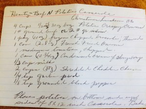 And Momma always had something delicious for us. Her barbecue spare ribs were fall off the bone scrumptious, and she made a homemade potato salad that became one of her most-requested recipes. She sometimes made a casserole we all liked; usually something she called Yumasetta (said to be an Amish recipe), or a taco-ish dish covered in Frito’s corn chips, or “Hearty Beef N Potato Casserole,” a recipe that was served at a Christmas luncheon at her church in 1986. On a hot summer’s eve, she made this seafood pasta salad that was better than any I have ever had. Oh, and her potato soup. Oh, my! Her creamy potato soup was SO good that our daughter Beth wanted it on her 15th birthday menu – along with crescent rolls (from a can), deviled eggs, and cherry juice!