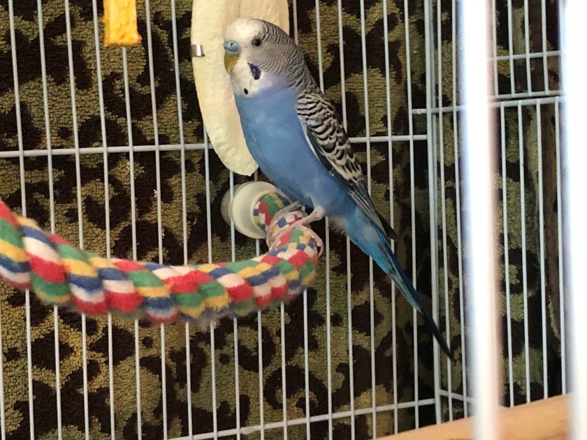 So, when a “free” parakeet became available, I jumped at the chance to add a little pet therapy to our home caregiving. My daughter and her family kindly offered to go pick up the bird from the paint store where he was temporarily residing. Momma watched with curiosity as my daughter carried the towel-covered cage through the kitchen and placed it upon an old toy chest. Once she figured out what it was, rather than be delighted, Momma chaffed at the sight of the bird in the cage. She wanted nothing to do with Philip. We had so hoped she’d warm up to this handsome little guy.