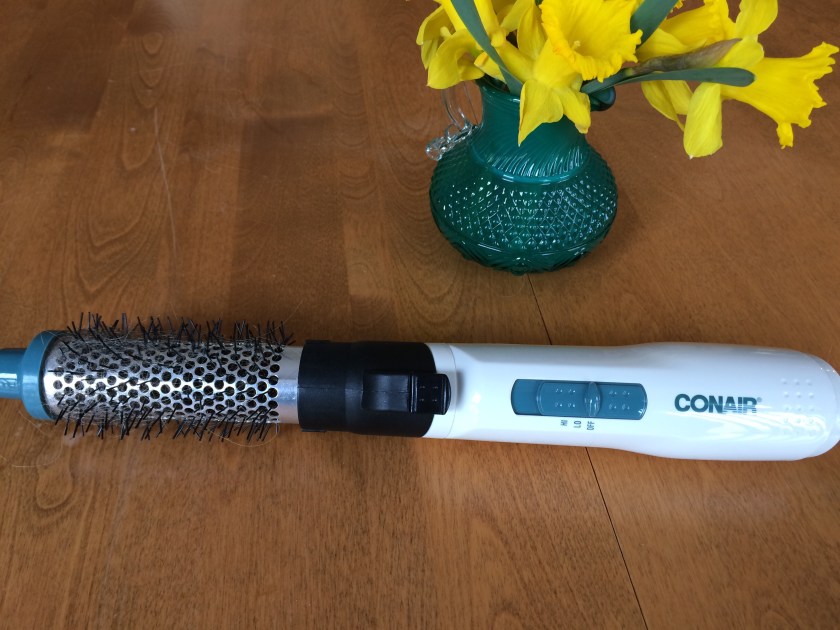 About once a week, with the help of an inflatable shampoo basin purchased on Amazon.com and a hot-air curling brush, I have been turning our kitchen into a little makeshift hair salon. (Click these links for  the inflatable shampoo basin I used and a similar hot air curing brush.)