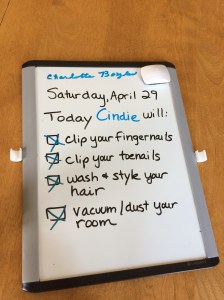 We now wash her hair at home. Hair washing is sometimes planned into our day. Other days – like today – it’s impromptu. I was delightfully surprised that Mom allowed me to wash her hair tonight (a task generally better accomplished in the morning).