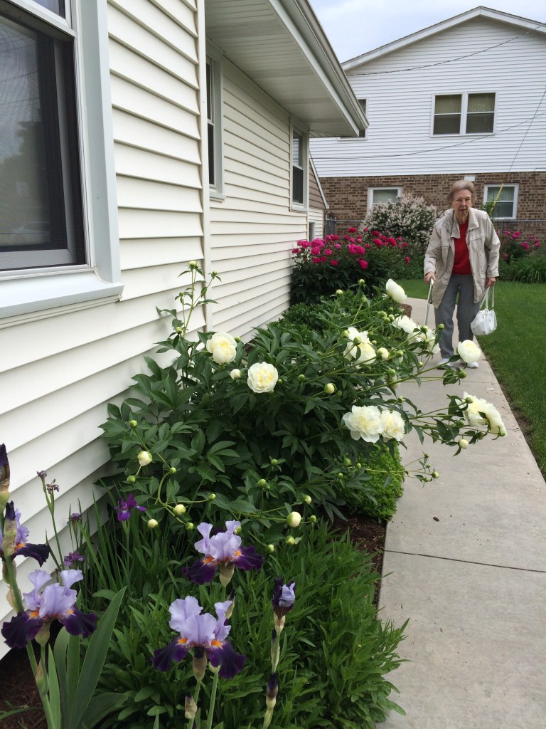My Mom took over gardening duties when Dad was in his final battle with cancer. I’d say she was a natural at gardening, enjoying spending time “scootching around” on the ground tending her plants and actually enJOYing pulling weeds. Nearly every inch of dirt seemed to burst forth with floral splendor. When we found it necessary to move her out of her home and into a senior apartment, we brought along her favorite blue pots so she could enjoy tending a few of her favorite flowers on her little patio.