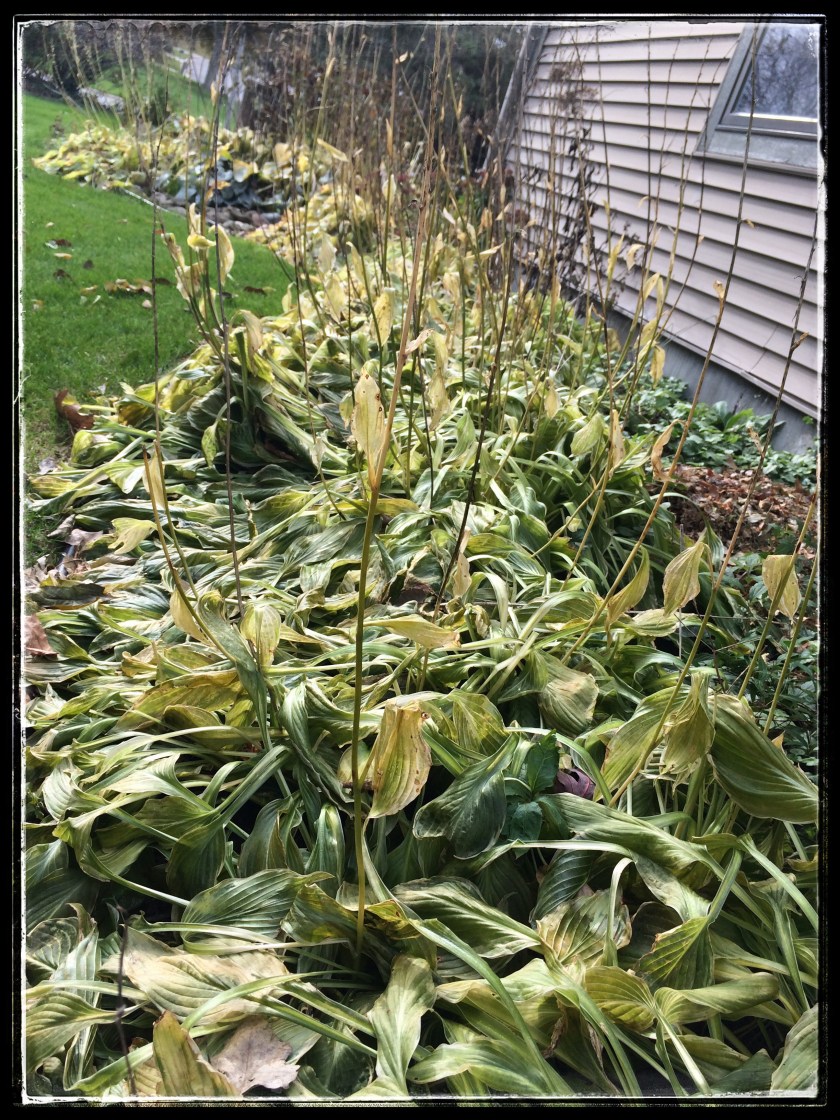 As I surveyed my gardens this morning, searching for beauty I could share, my eyes at first only saw the work that needed to be done…like pulling all of this frosted hosta.