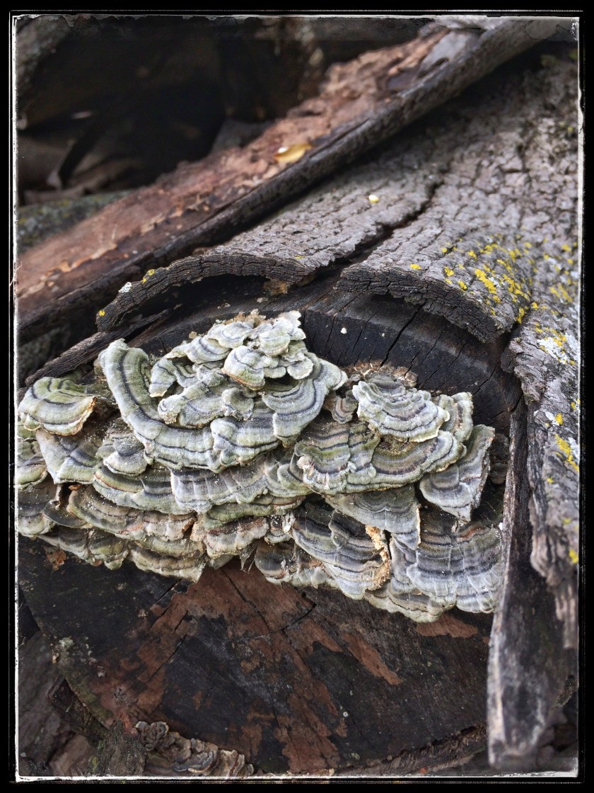 I might never have explored the lacy layers of fungus growing on our neighbor’s tree stump and woodpile. Fascinating.