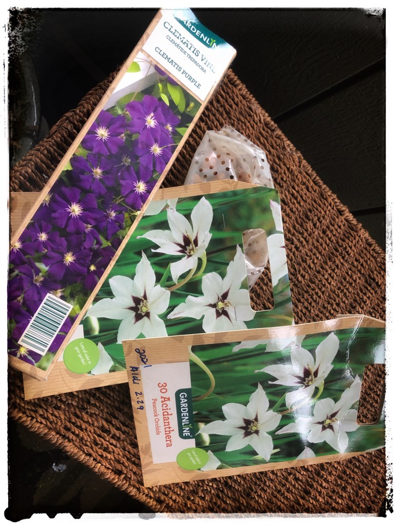 I’ve had a yearning to plant ‘Peacock Orchids’ (Acidanthera), a sweet little flower I had in my very first garden 40 years ago. I found the bulbs on sale on a site I occasionally order from, so placed them in my virtual shopping cart. Even on sale, 10 bulbs for $10.99 (plus about $10 for shipping) seemed a bit steep. But, I also had a credit of $7 to spend, which would bring the cost down a bit more. However, in order to use the credit, I would have to call them to place my order…so they sat in my “cart” over the weekend. Imagine my delight when I walked into my local Aldi grocery store and saw the same bulbs for sale…30 bulbs for $2.29!