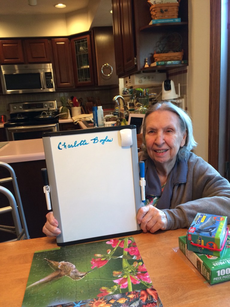Mom is at what her doctor calls the “moderate stage” of dementia where she is keenly aware that she is losing her ability to recall information and is trying her hardest to keep random pieces of information that won’t stay filed away in her brain in a place where she can easily retrieve them. Her lists are her safety net helping her capture not only her to-do list, but the stray thoughts, ideas, and necessities of life.