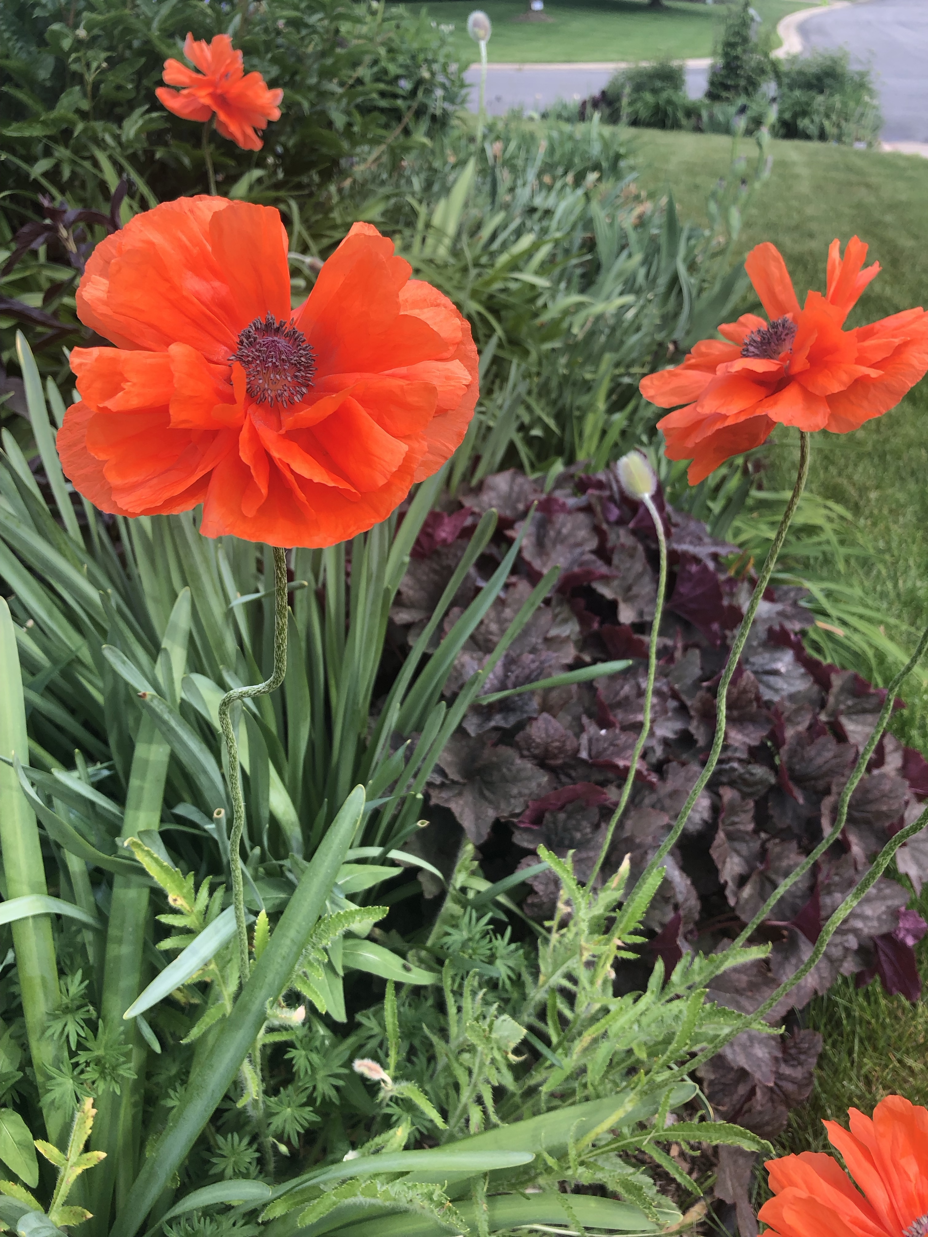 My little stand of poppies waved their annual pop of orange at us as we pulled further up the driveway. Poppies exude a certain kind of whimsy with their wonky, twisty stems. I think I love the stems as much as the amazing flower.