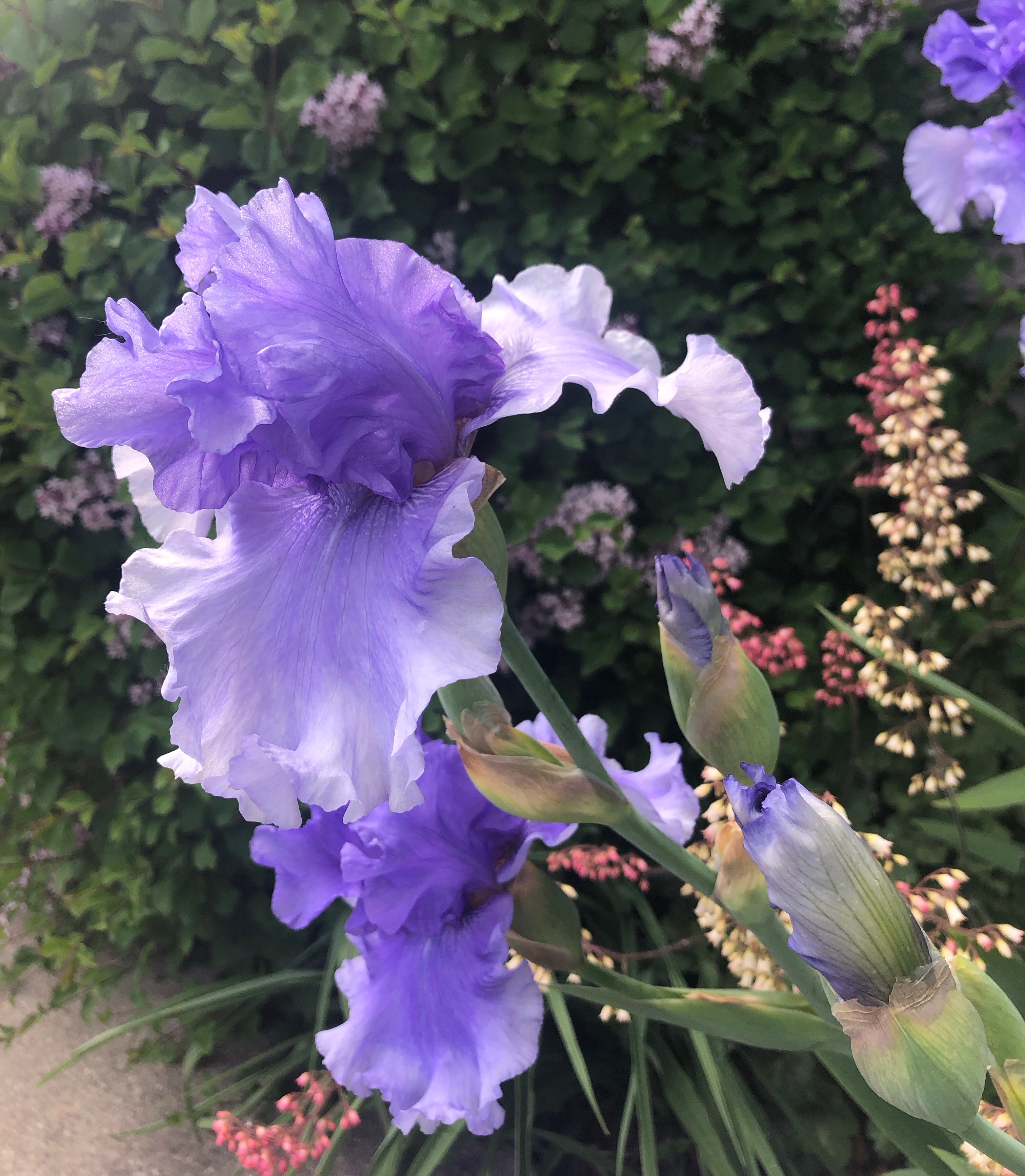Six lovely irises—weathering our dry spell with grace and beauty.