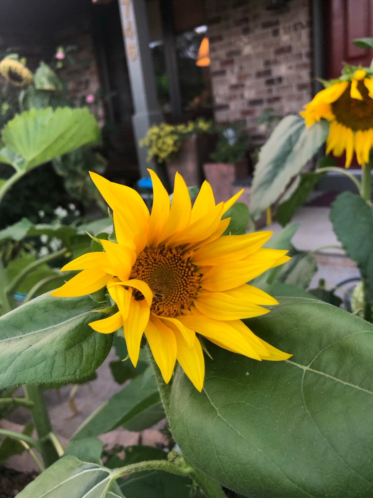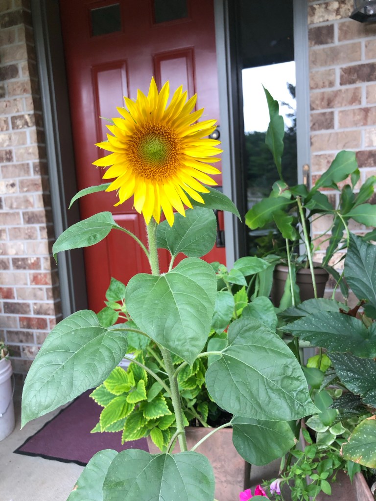 Our resident squirrels seem to like planting sunflowers every year in nearly the same spot next to our front porch. Well, I suppose the nearby bird feeder could be to blame.