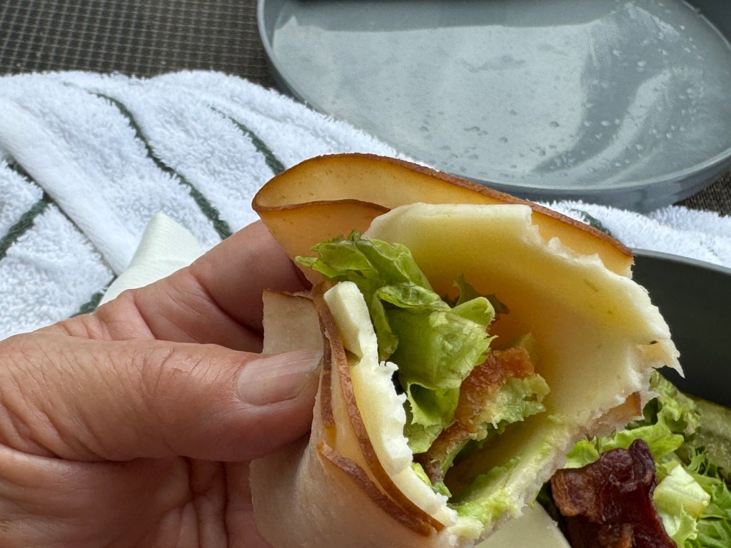 I requested the turkey, avocado and bacon wrap. I requested a lettuce wrap as a substitute for the giant spinach tortilla, and skipped the chips or fries.
