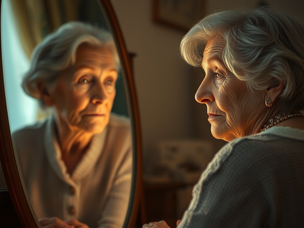 My mom didn’t seem to have anxiety or fear when she viewed herself in a mirror, but I could tell she was wary of the person in the image. Momma was always gracious and hospitable, so it didn’t surprise me that she would sometimes think the image peering back at her in the mirror was someone visiting her home. I believe mom viewed herself as younger than her mirror image, so didn’t think that she was that older woman in the mirror. Mom’s mirror confusion was evidenced by her sometimes having an entirely sweet little chat with the other person.