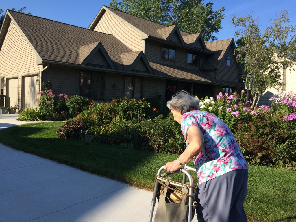A woman never wants to leave the house without her purse, you know. We even rigged her walker so she could take her purse with her on our little walks to the mailbox and back.