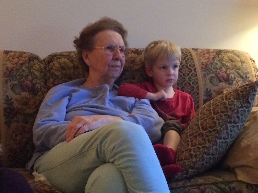 Reading to my mom was a bit tricky. She was pretty hard of hearing, but I’m so proud of my grandkids (her greats) who did their best to include their great-grandma by reading with her. My youngest grandson George was amazingly good at this. He knew how to put on his loud voice and would snuggle up to her and look at books with her whenever he would visit.