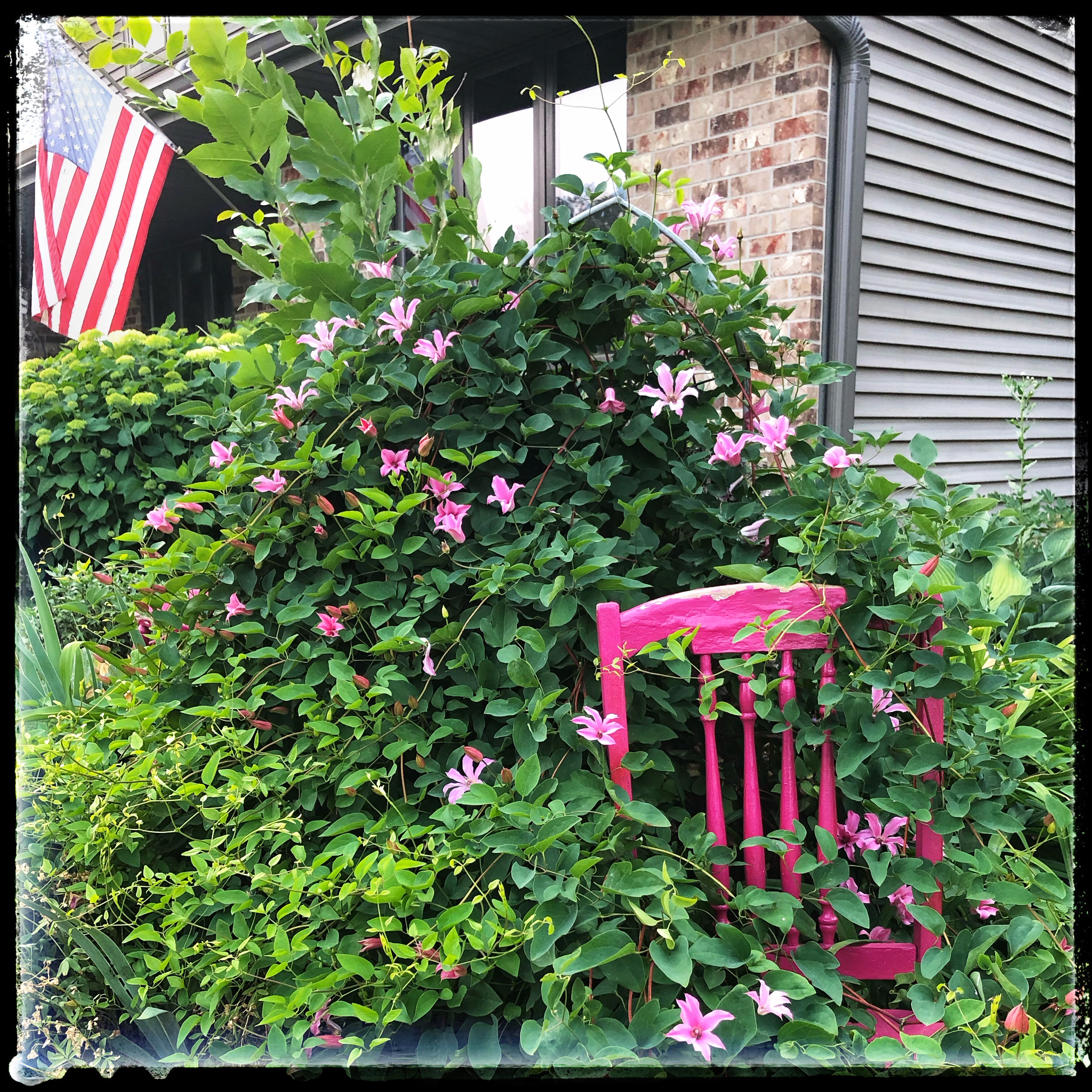 Pretty in pink Clematis ‘Princess Diana’ is charming and super-happy this summer. I have her planted in full sun on both the southwest and southeast sides of our home. Though not technically a climber, I’ve trained her to the arbor at the entrance to our backyard.