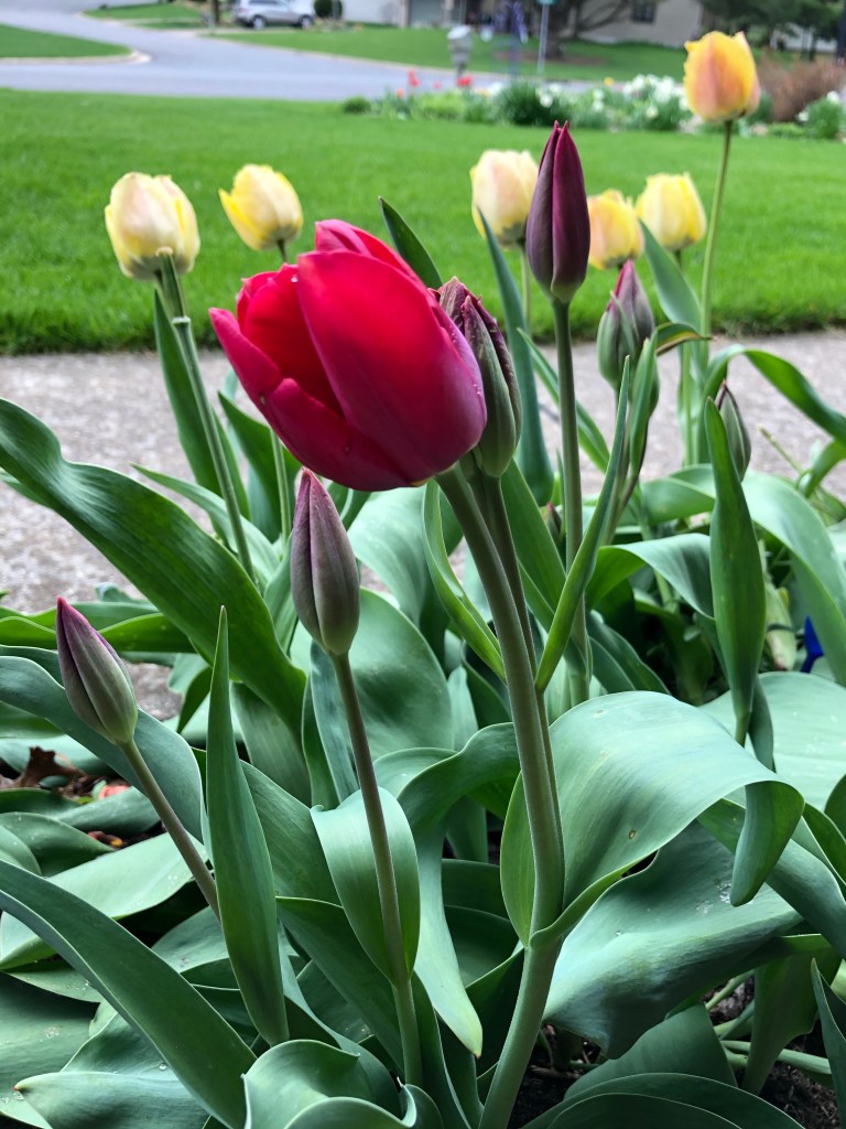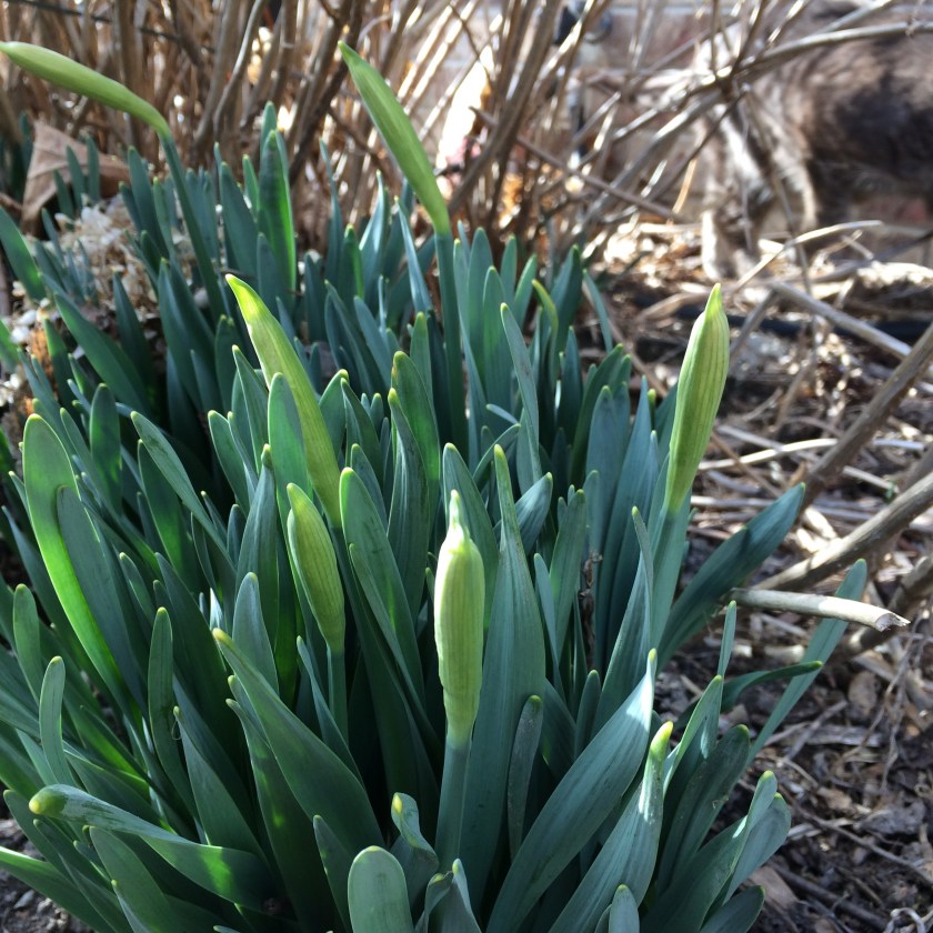 Tulips like the sun, so I’m always surprised (and extra thankful) to see the tips of tulips pushing their way up into sight on the shady north side of my house. Here are a few which have emerged right next to my only remaining swath of snow.