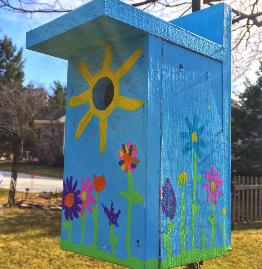 Another sure sign that spring has sprung is when I begin seeing a lot more activity in and around the various birdhouses and nestboxes in our yard. The one pictured below was painted by my grandson Charlie. I cleaned this nestbox out a few weeks ago so the new tenants would have a fresh start. As you can see in the photo collage below, the side of the box hinges open, revealing the fact that new tenants are making good use of our neighbor’s pine needles in their cozy abode.