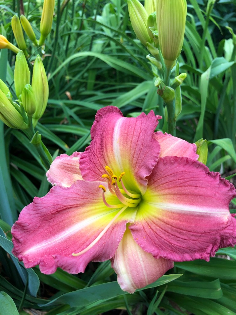This deep fuchsia pink daylily and blue-green hosta combo nearly took my breath away with its beauty.