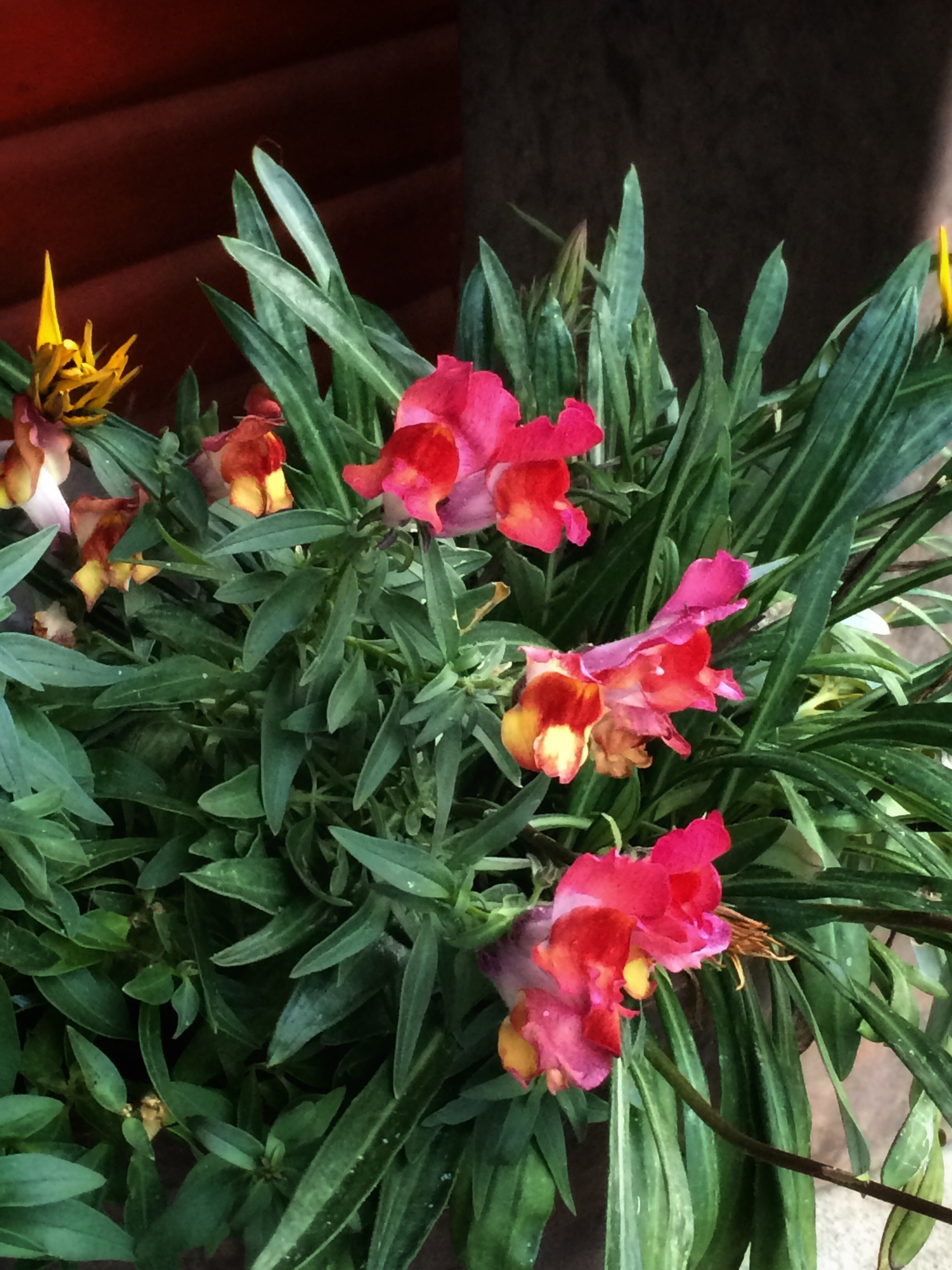 I was happy to discover a flowerpot within the shelter of the front porch still shows off a bit of fall’s snapdragon magic.