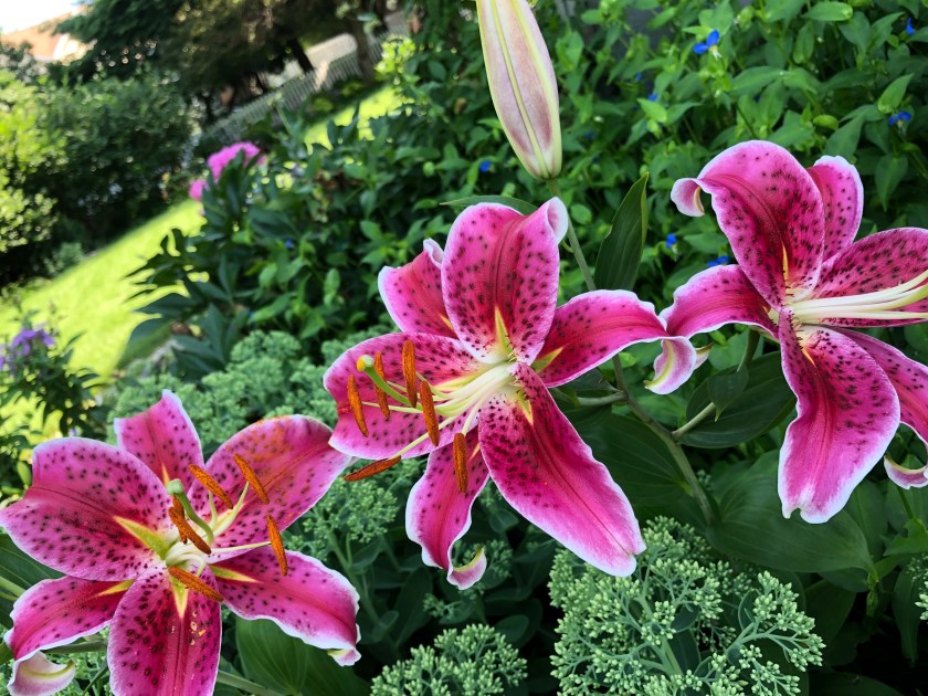 Ending my Six on Saturday garden tour on a very fragrant note… ‘Stargazer Lily,’ a lovely Oriental lily, has burst forth in glorious bloom this week. What an amazing, exotic perfume!