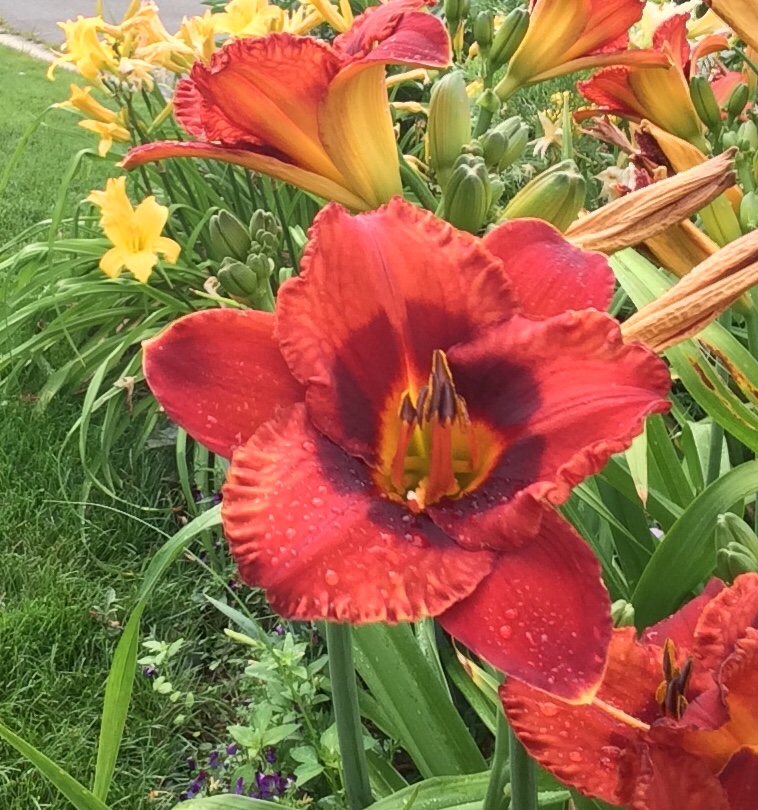 Hemerocallis ‘Earlybird Cardinal’ is a striking flash of rich red along the front edge of my furthest flowerbed. I can see this beauty whenever I’m in my kitchen. I plan to take a division and move some closer to the house. This photo doesn’t do justice to the intensity and vibrancy of its red color.