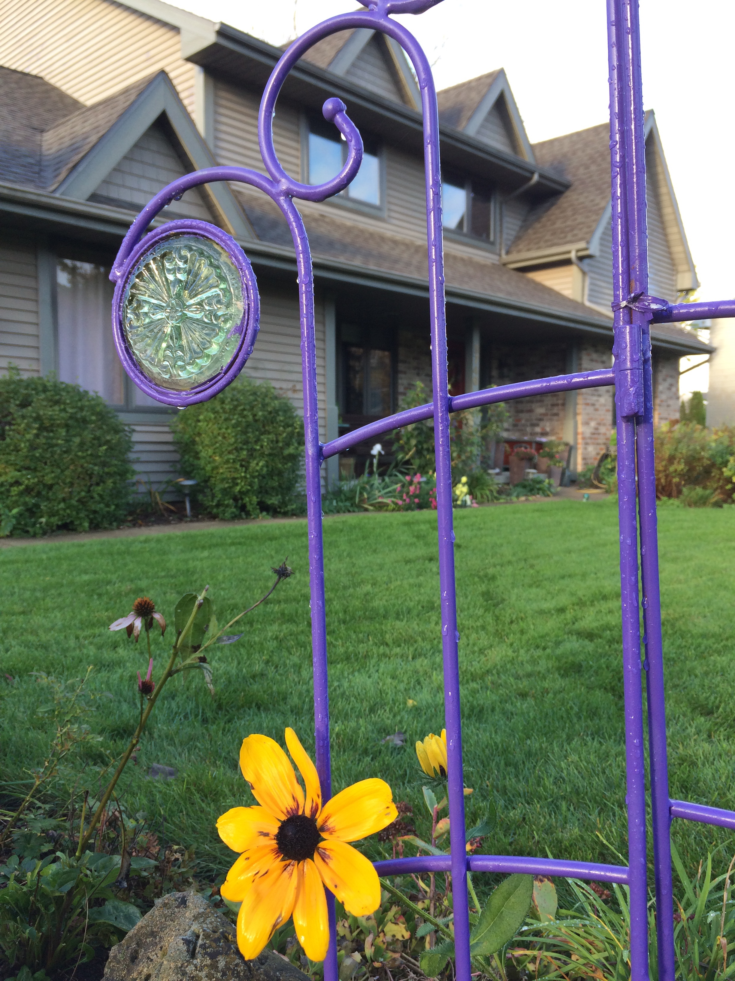 A tired garden trellis is given a fun purple paint-job and a new lease on life, thanks to my hubby.