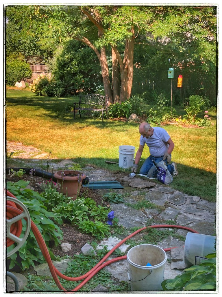 Oh, and let me introduce you to the hardest working garden helper I have – my husband of 44 years, Wayne. Along with a never ending list of household projects, he’s been busy this summer ticking things off my garden to-do list, including replacing and leveling flagstones on my garden path.