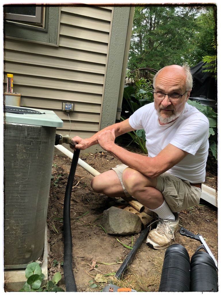Today’s project finds him busy cleaning a summer’s worth of cottonwood fluff and other plant debris and critter mess from our air-conditioning unit. Projects, to name just a few, have included rebuilding two of our raised garden beds, building birdhouses for me to paint, emptying and moving a compost bin, digging plants from here and moving them to there, and doing his level best to be a blessing to his wife. Seriously, what would I do without him?