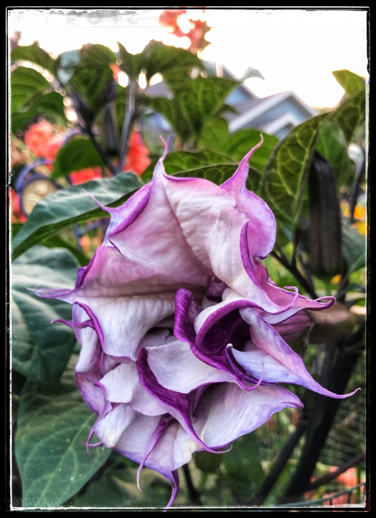 Well, for one thing, the entire plant is poisonous – leaves, flowers, seeds and all. For another, this plant does not have a pleasant aroma. The tag said something about gardeners praising it for its “night-blooming beauty and fragrance”. I guess I’m not hanging out in the garden late enough in the evening to catch a whiff of its beauty or its purportedly sweet fragrance because, to me, it has the aroma of dirty sweat socks. (Trust me, I’m a mom and an expert at sniffing down that odor.)