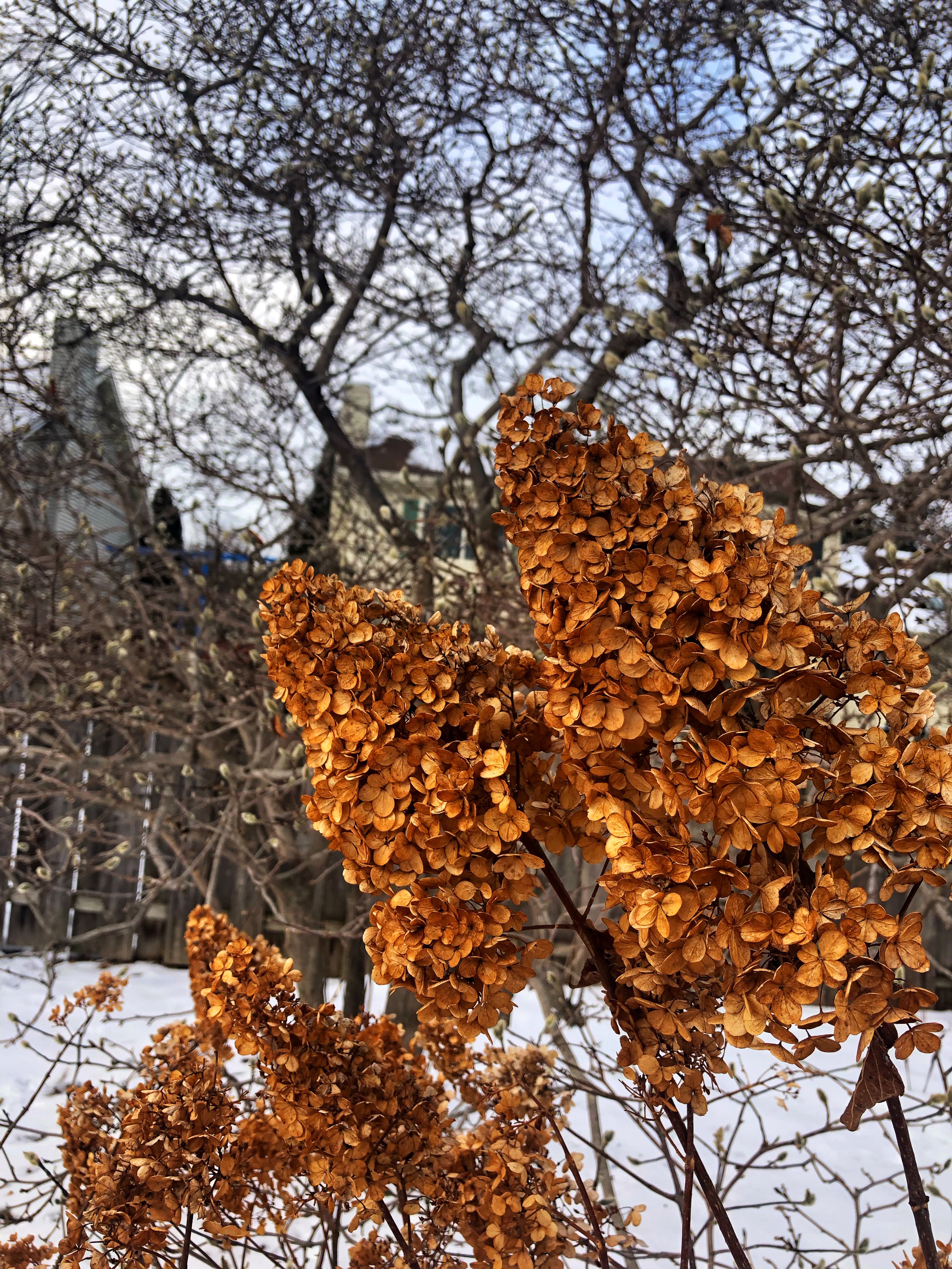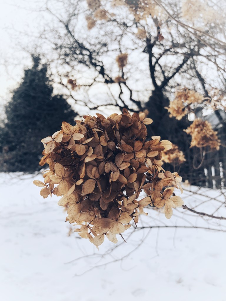 To my admiring eyes, the paper-thin beauty of spent hydrangea blossoms still speaks of their Creator even in the hushed silence of winter.