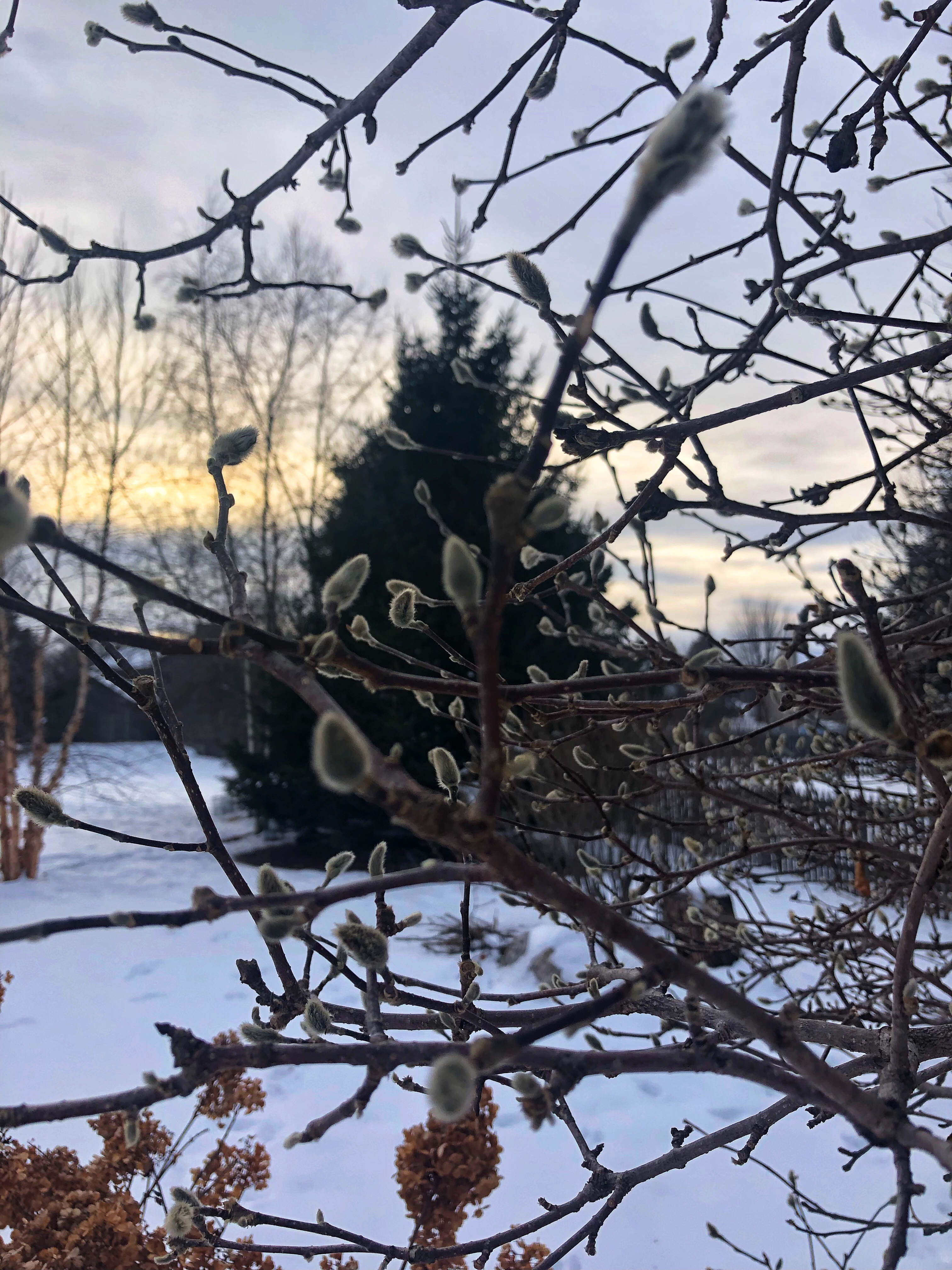 Tucked in the northwest corner of our yard, the swelling buds of the magnolia tree speak to the promise of beauty in the Spring.