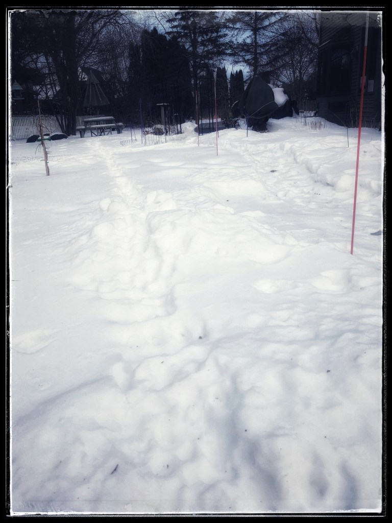 Gardens are still snugly nestled beneath a lovely quilt of white snow in Wisconsin. It’s hard to capture in a photo, but, if you squint your eyes as you look at this photo of my backyard, you might be able to spy where bunnies and critters have created many intersecting paths in the snow — reminding me very much of quilting stitches, especially when viewed from a second-story window.