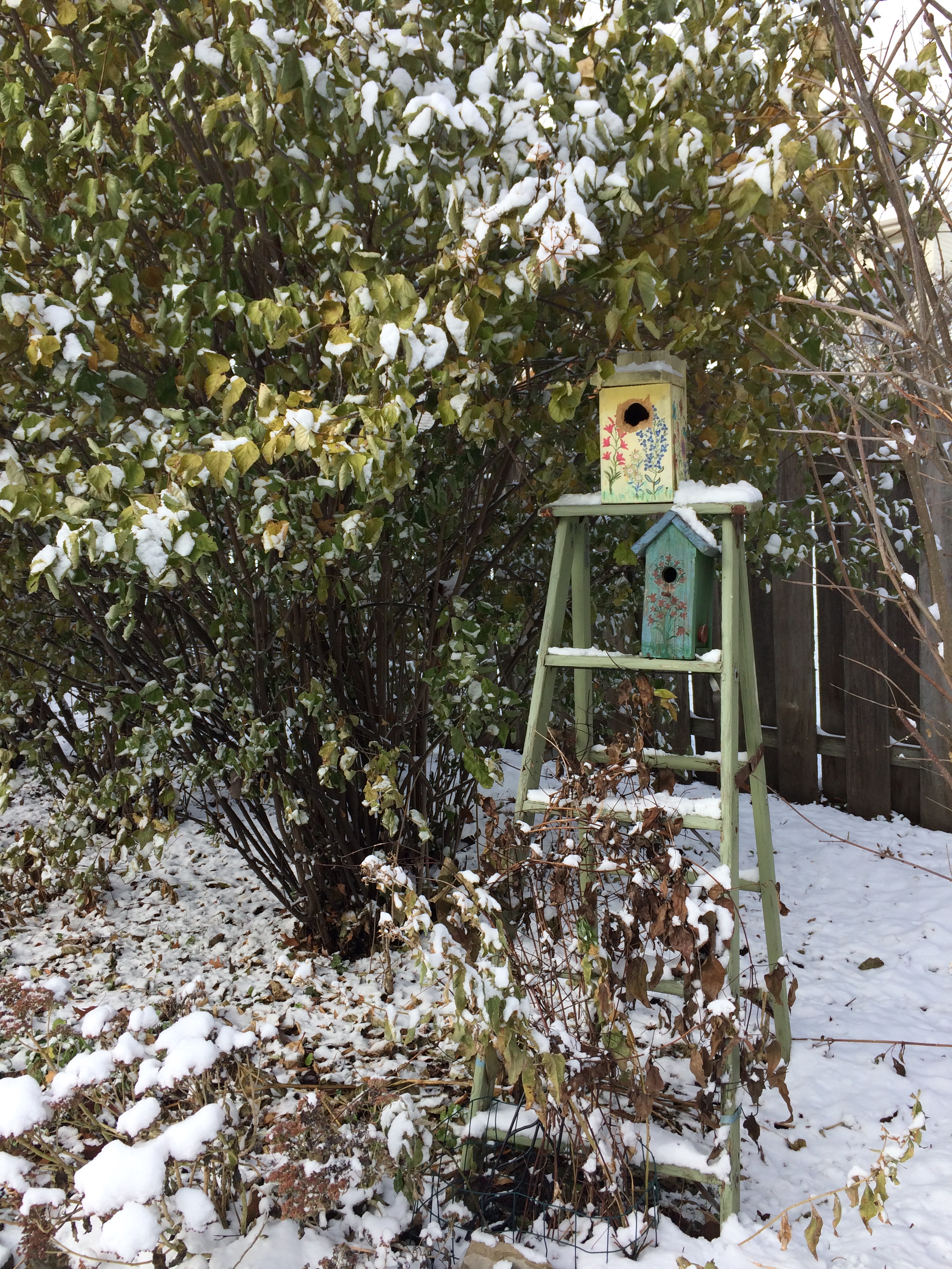 The rest of my day was spent doing quiet things like reading, working on a Bible study and listening to some great music. But the picturesque scene just outside my window beckoned me to venture outdoors for at least a few minutes. My hubby had shoveled a path to the backyard birdfeeders, so I decided to make the birds happy and refill each feeder. It was pretty chilly out there, so I didn’t stay out long, but the sun was shining and the snow was beautiful, so I snapped a few photos to share with you.