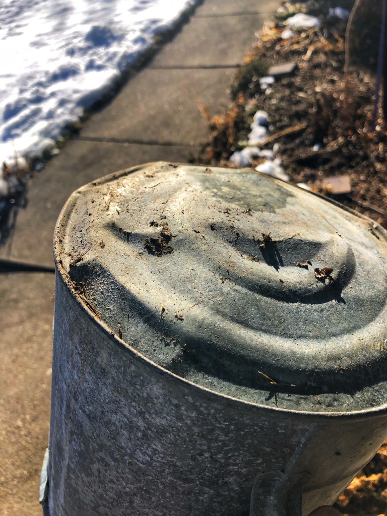 Unfortunately, I left my galvanized watering cans out in the snow this winter. I pulled them both out of a drift of snow and was saddened to see how much the bottoms had buckled. I’m kicking myself for that negligence, as the bottom of both cans is now bulging, so the cans rock when you set them on a flat surface. One was my dad’s watering can, so it makes me especially sad that I didn’t take good care of it.